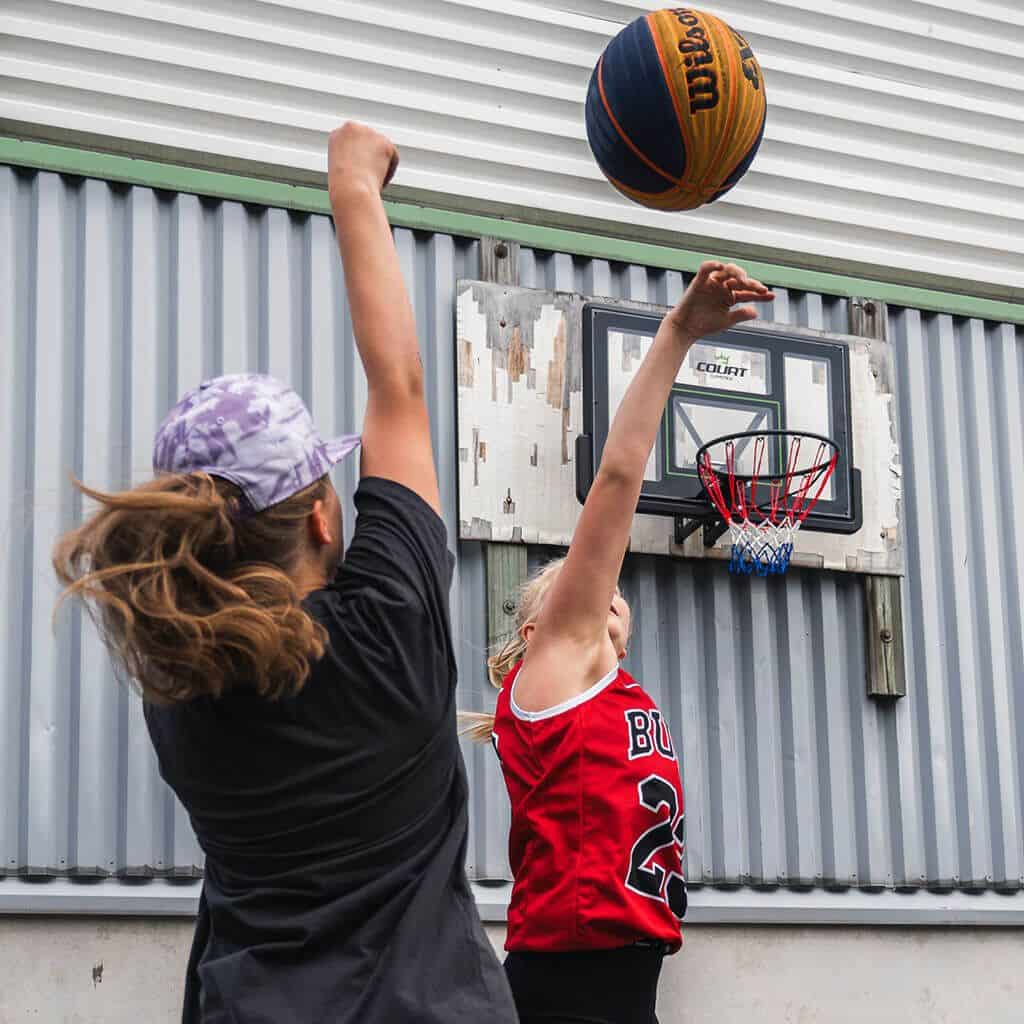 Seinäkiinnitteinen rakenne tekee Court Layup Hoopista erityisen käytännöllisen. Teline on helppo asentaa esimerkiksi talon tai autotallin seinään juuri halutulle korkeudelle. Sama kori palvelee siis koko perhettä tai vaihtuvia treenitarpeita. Kun korkeus on kohdallaan, peli voi alkaa heti.