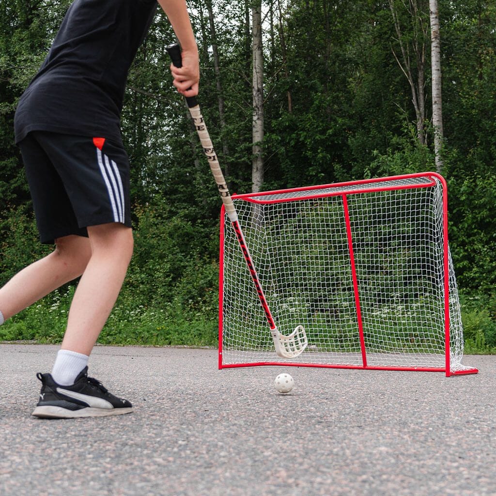 Court Floorball Goal on kevyeen pihapelaamiseen suunniteltu vakiokokoinen salibandymaali, joka kulkee helposti mukana ja kestää kotikentän peruslaukaukset. Maalissa on kestävä 25 × 0,7 mm teräsrunko, joka tuo rakenteeseen riittävän jäykkyyden ilman ylimääräistä painoa. Säänkestävä 3‑ply polyesteriverkko sopii erinomaisesti ulkokäyttöön, ja koko maali on helppo siirtää treenipaikalta toiselle vain 4,7 kg painonsa ansiosta.